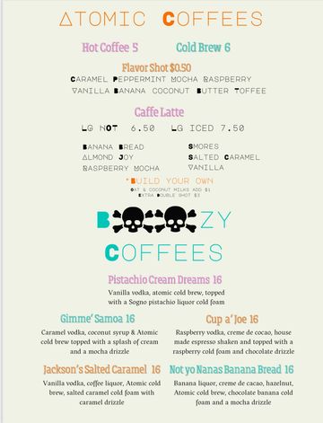 Crafted coffees, lattes, Boozys and more!